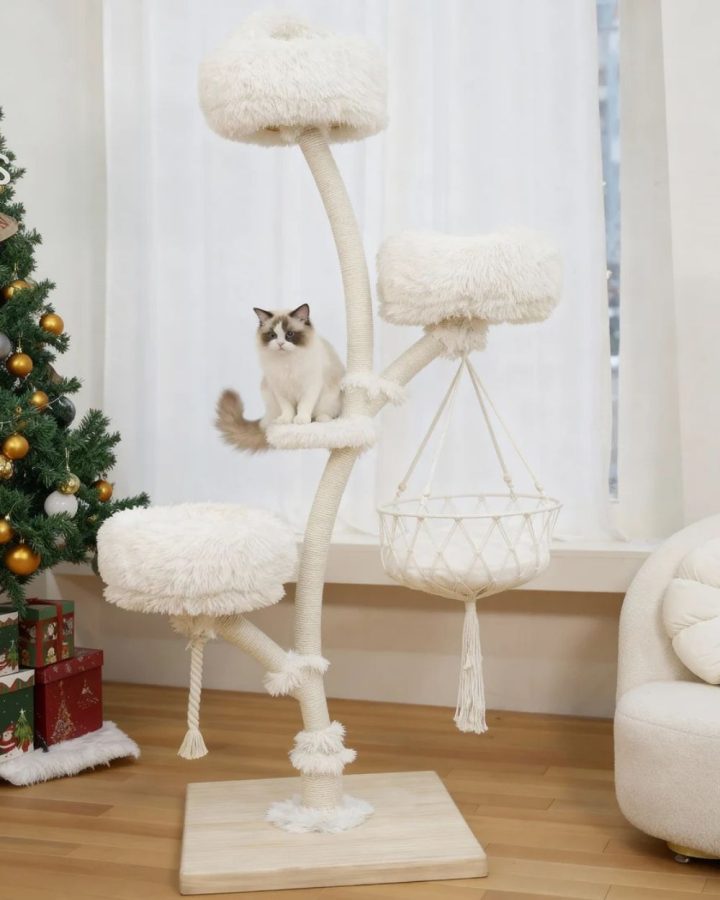 Modern cat trees have come a long way from bulky carpeted towers. Today’s designs focus on clean wood finishes, sculptural forms, and vertical layouts that blend naturally into real living spaces.